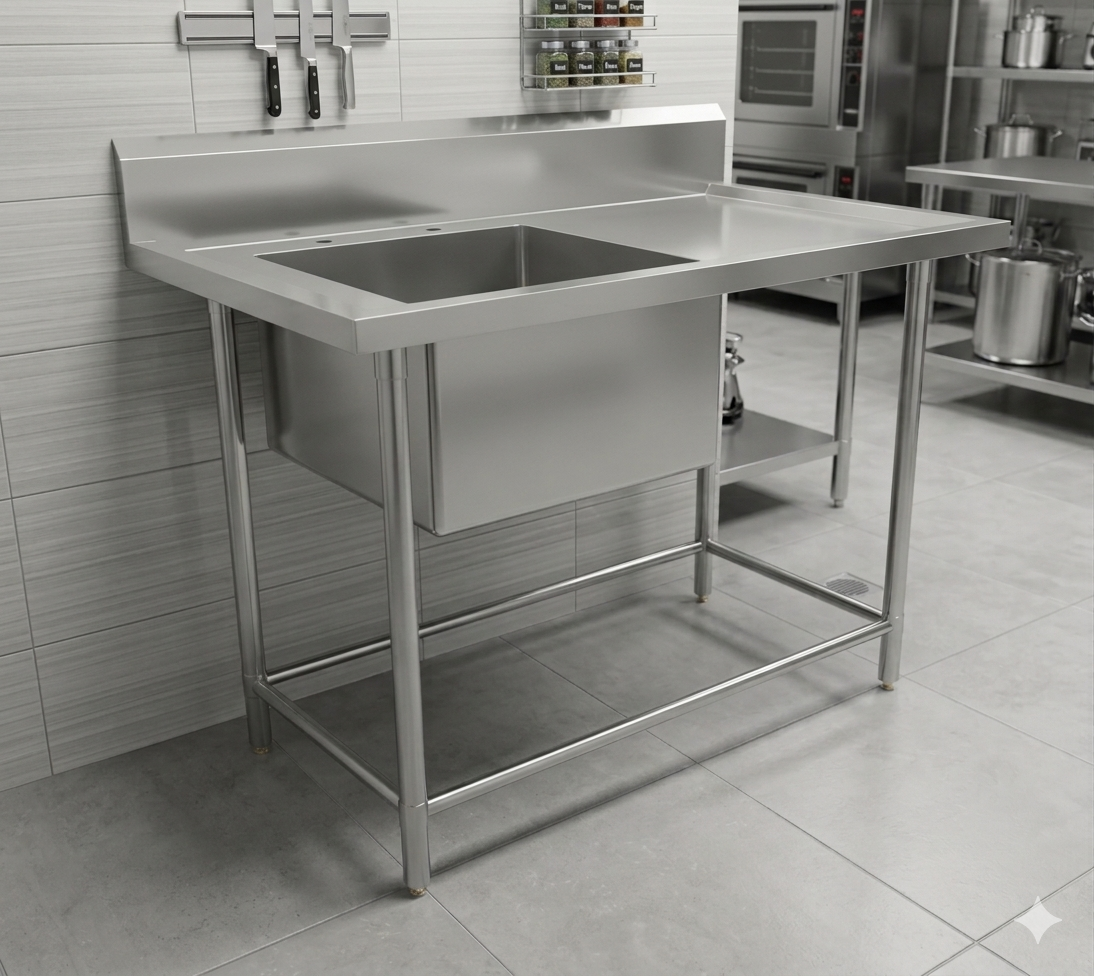 Kết luận: Bàn 1 chậu rửa inox là giải pháp kinh tế và hiệu quả cho mọi gian bếp. Với sự bền bỉ và tính đa năng, đây chắc chắn là khoản đầu tư xứng đáng để nâng cấp quy trình vận hành và giữ cho không gian làm việc luôn gọn gàng, chuyên nghiệp.