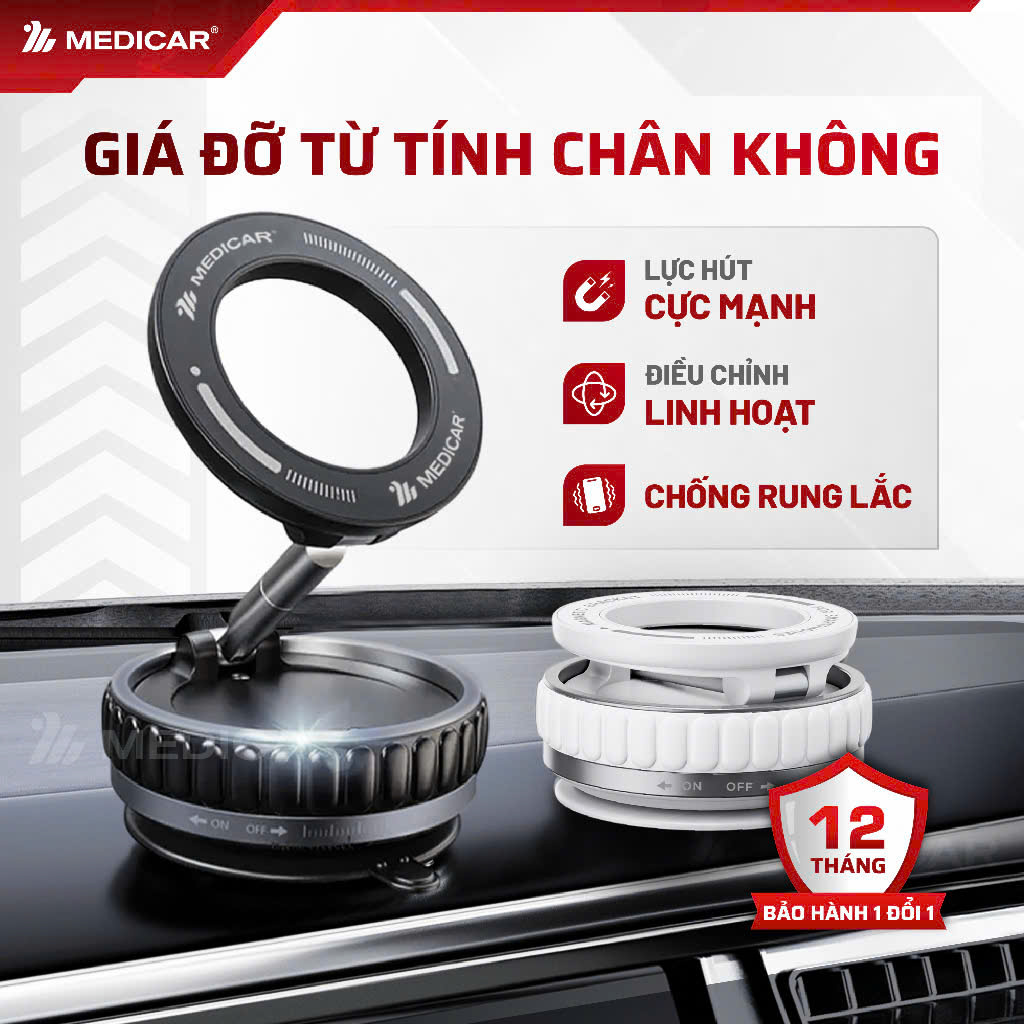 GIÁ ĐỠ ĐIỆN THOẠI TỪ TÍNH CHÂN KHÔNG Medicar, lực hút từ tính mạnh mẽ, đế hút chân không xoay 360 độ