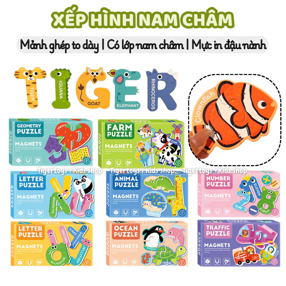 Đồ chơi nam châm xếp hình, xếp hình nam châm 2 mảnh mẫu mới, mảnh ghép dày dặn chắc tay, lực hút mạnh TIGERTOYS