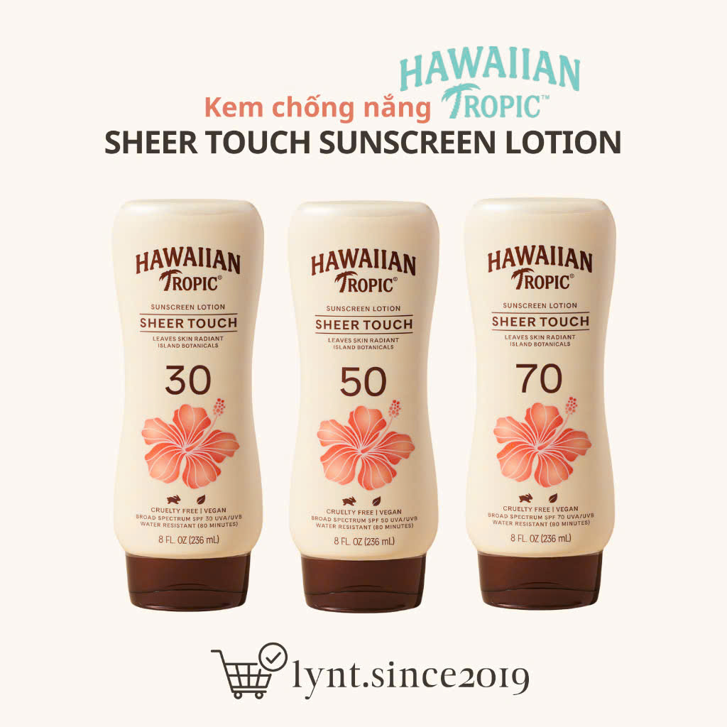 Kem chống nắng HAWAIIAN Tropic Sheer Touch Sunscreen Lotion SPF 30/50/70 chống nắng toàn thân, dưỡng ẩm, tạo ánh nhũ