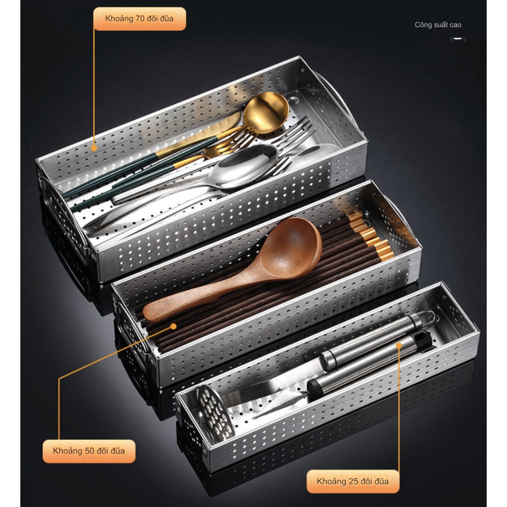 Khay đựng muỗng đũa inox 304 cao cấp có quai cầm và lổ thoát nước hàng đẹp sắc nét