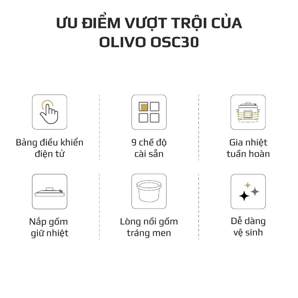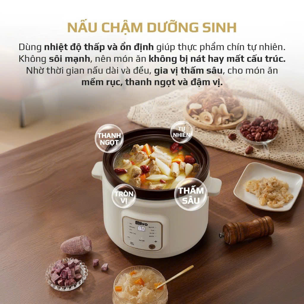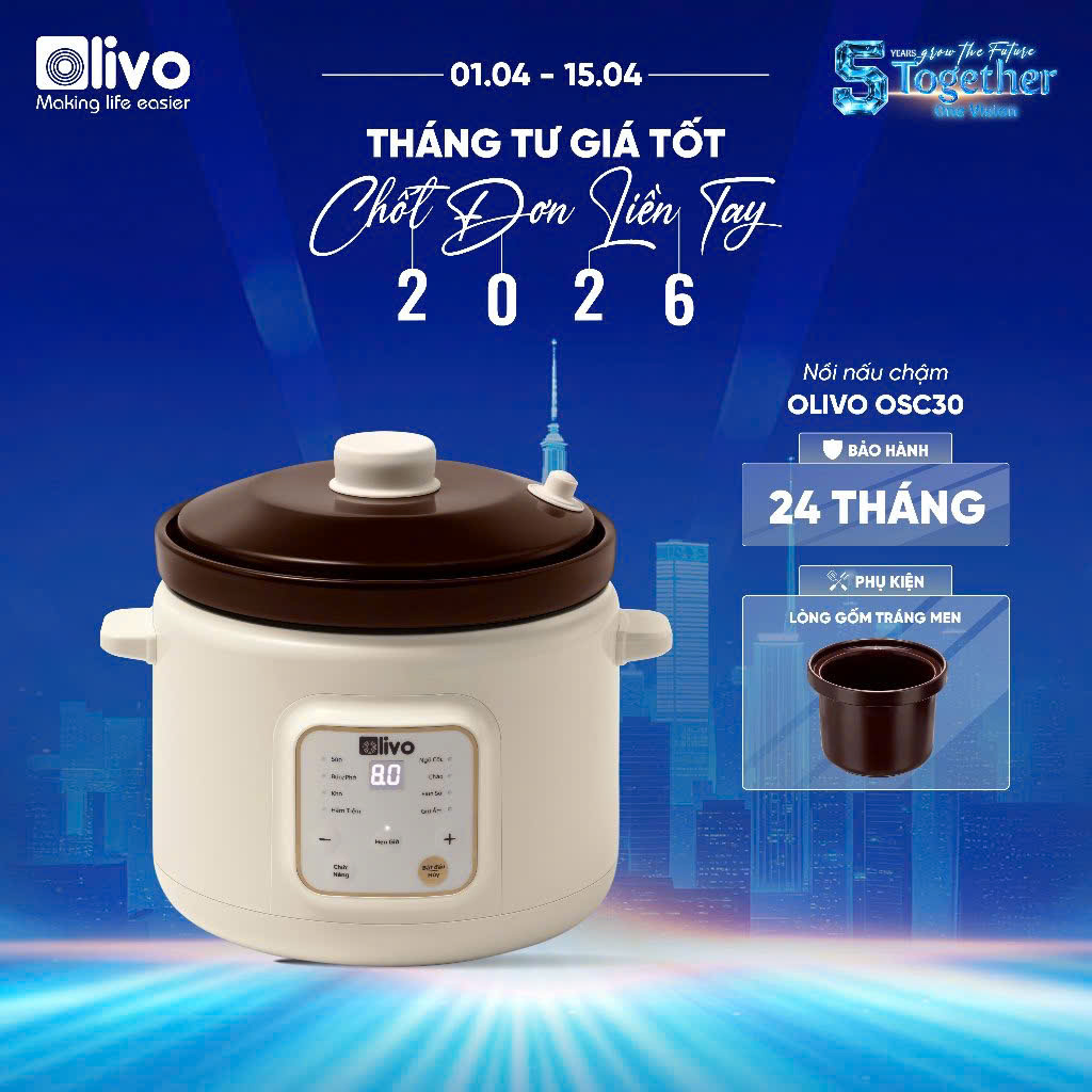 OLIVO OSC30 là nồi nấu chậm thế hệ mới, kết hợp tinh hoa nấu chậm truyền thống với bảng điều khiển điện tử hiện đại. Nhờ cơ chế gia nhiệt ổn định, món ăn chín mềm sâu, đậm vị và giữ trọn dưỡng chất – đặc biệt phù hợp cho gia đình theo đuổi lối sống lành mạnh.